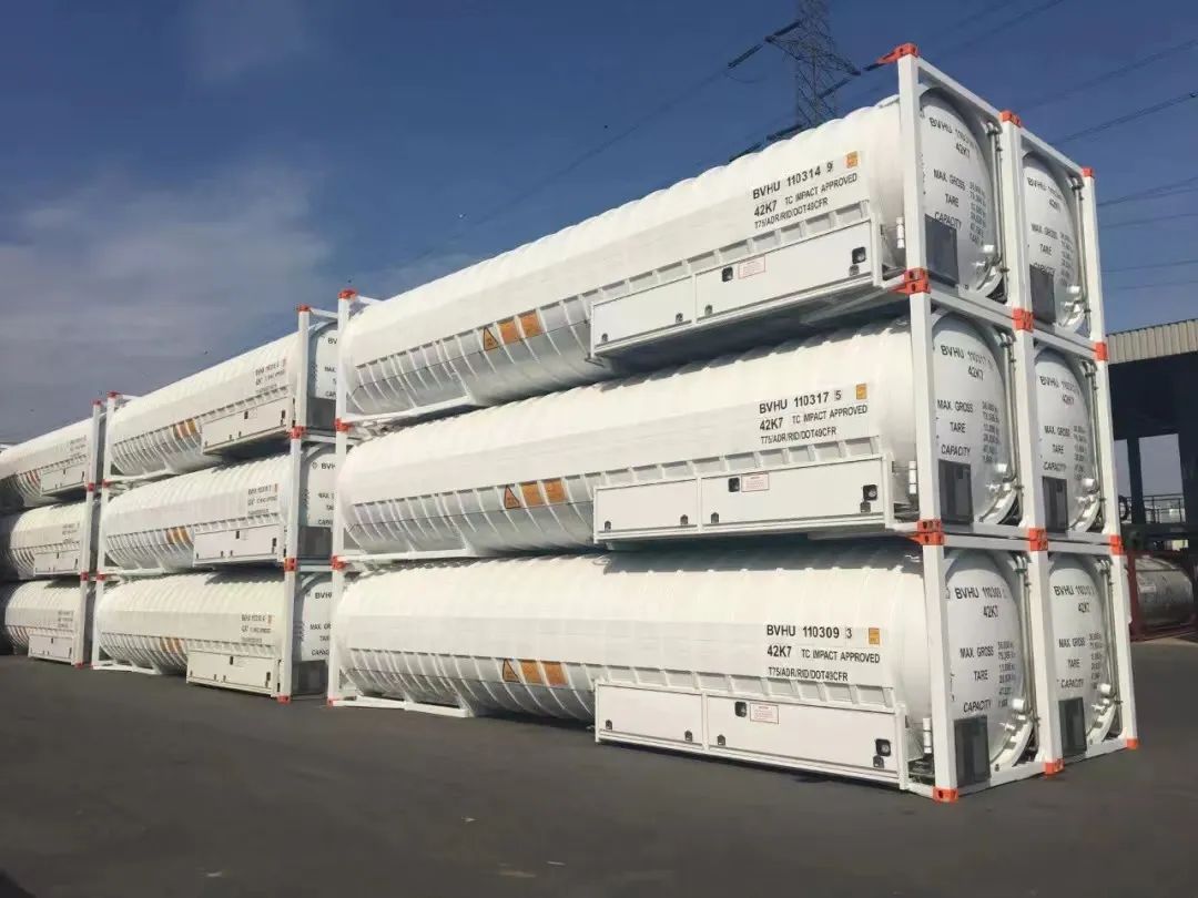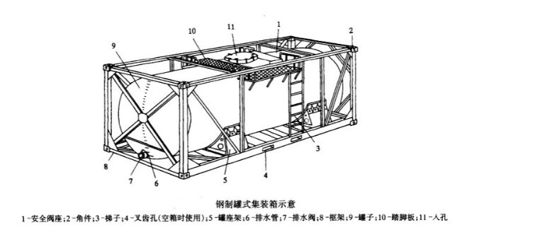 罐體四周有起保護(hù)和吊裝作用的角部承力框架。罐箱的外部框架尺寸完全等同于國際標(biāo)準(zhǔn)20集裝箱的尺寸(長20英尺,寬:8英尺,高:8英尺/6英寸)。